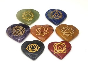 Piedra de ágata natural 7 Chakra conjunto de corazón tallado a mano 7 Chakra corazón piedra mascota estilo en cristal curativo